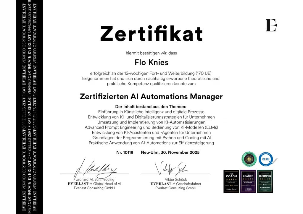 Seit wir AI Voiceagents von titanspear.agency nuten konnten wir unseren Umsatz verdoppeln, wir sind sehr zufrieden. Vielen dank an Flo für die tolle Arbeit.